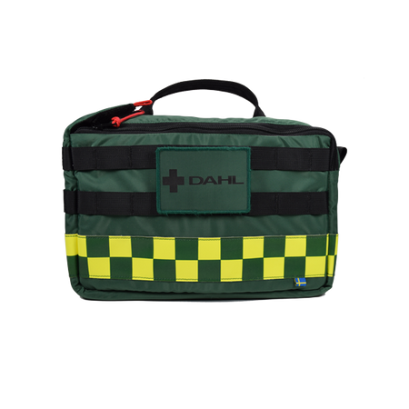 Akutväska med omfattande första hjälpen-innehåll för behandling vid svårare olycksfall.