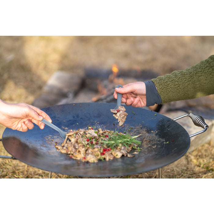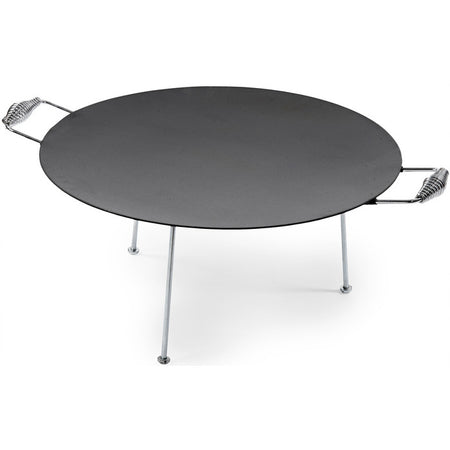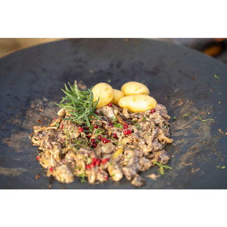 Vår mest populära stekhäll, perfekt för upp till 8 personer, är en mångsidig allroundhäll som passar både små och stora sällskap. Den är lika bra på utflykten som i uteköket i trädgården. Hällen kan användas med deras gasolbrännare, på en grill eller direkt över öppen eld. Tillverkad av högklassigt varmvalsat stål med en emaljerad yta, kombinerar den hållbarhet med enkel rengöring. De stiliga handtagen i kromat fjäderstål är inspirerade av gamla vedspisar och håller sig svalare än hällen.
