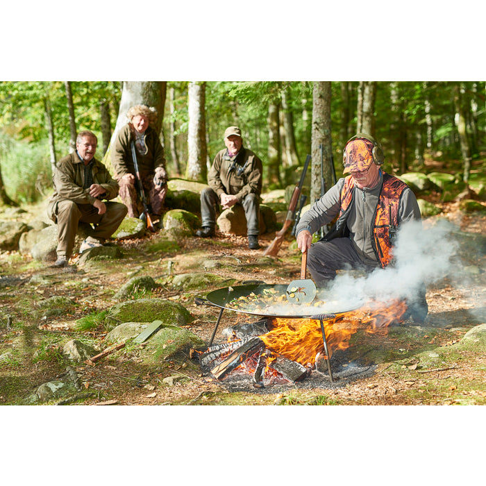 Denna stekhäll är perfekt för större sällskap och passar utmärkt för bjudningar eller utflykter där ni planerar att vara mer stationära, som i trädgården, på landstället eller nära vägen i naturen. Med en diameter på 78 cm hanterar den enkelt upp till 15 personer.