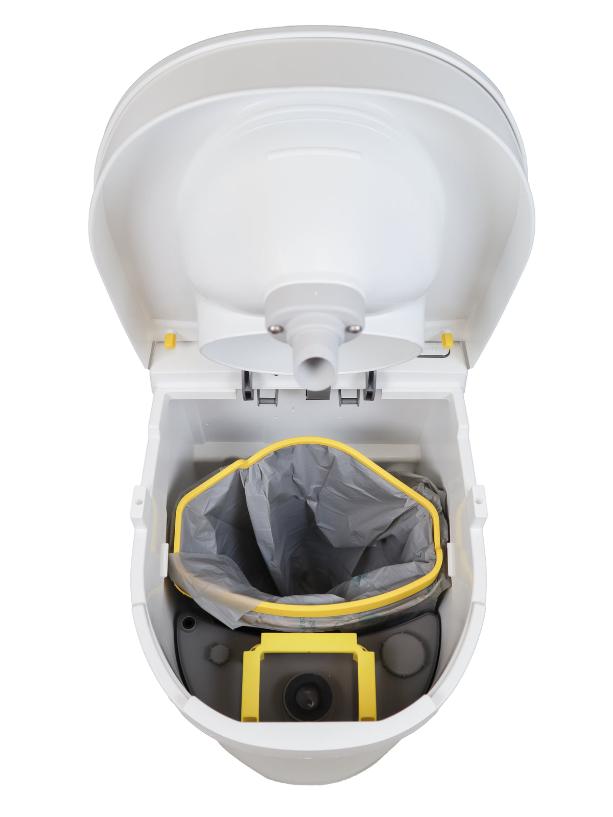 Den avloppsfria och bärbara designen gör toaletten enkel att installera, lätt att tömma och smidig att flytta dit den behövs som mest. Enkel att använda – och lika enkel att trivas med.