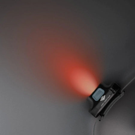 - Förutom vitt ljus har pannlampan ett rött ljusläge som bevarar mörkereseendet.